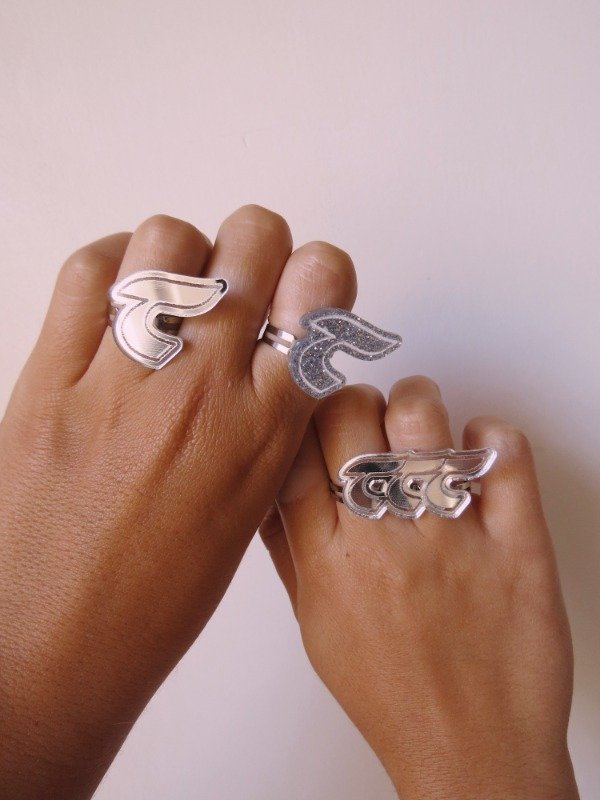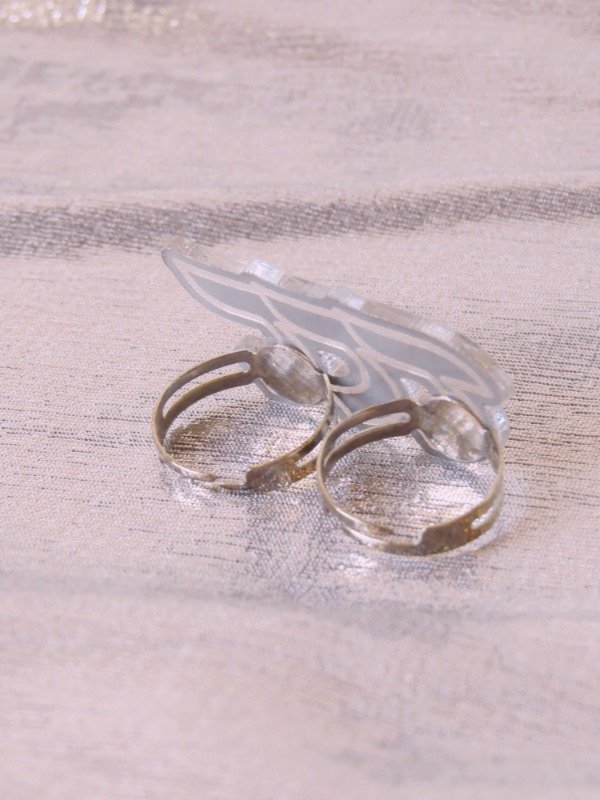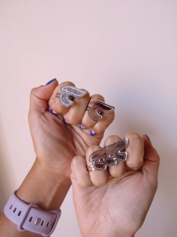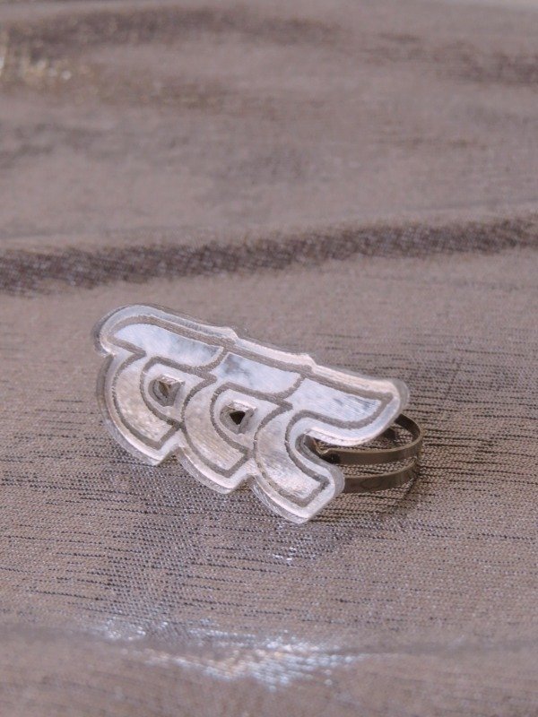 Anillo regulable doble con dije en forma de la triple T de acrilico espejado plateado cortado a laser!